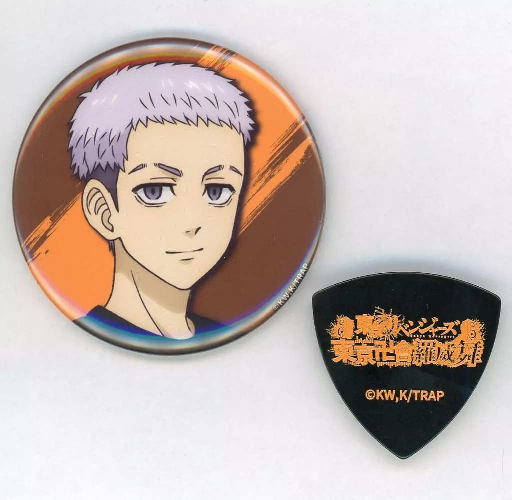 This is a metal badge & pick set of "Tokyo Revengers Naruhito Yumeka Hyoban 弐周 Year & Anniversary! Tokyo Manji 會羅 Imai" goods.