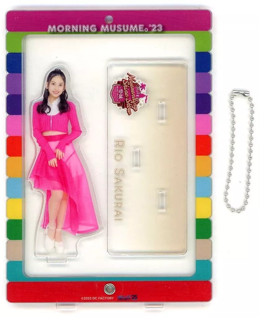 This item comes with a solo acrylic stand and a photo frame that can be decorated with sheet of paper measuring 89 × 127mm photos (comes with a ball chain).