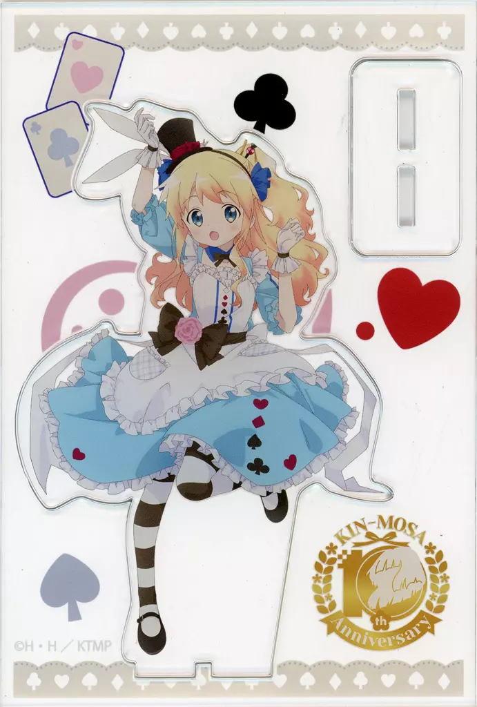 Product is an acrylic stand with an illustration commemorating the 10th anniversary of "Kin-iro Mosaic" broadcasting.