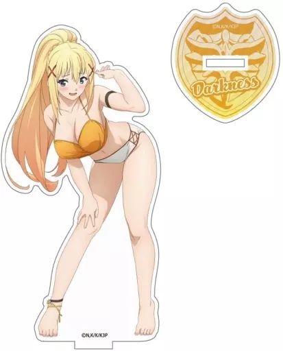 Fun acrylic stand decorated with Darkness where you can see your bathing suit.