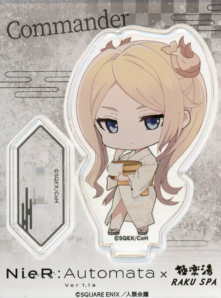Japanese title: アクリルスタンド・アクリルパネル ヨルハ部隊司令官 「NieR:Automata Ver1.1a×極楽湯・RAKU SPA 特別任務 極楽湯デ超回復セヨ トレーディングアクリルスタンド」