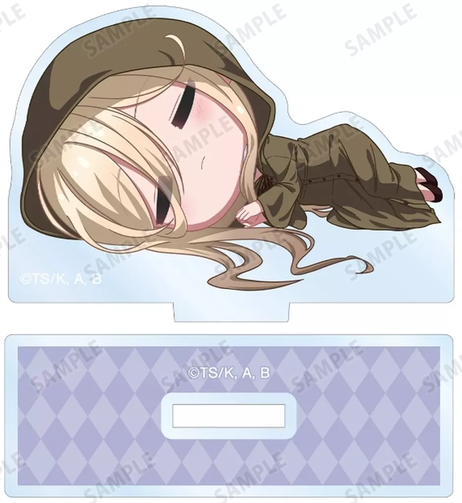 This is an acrylic stand with a newly created picture of Chibi Character sleeping around.