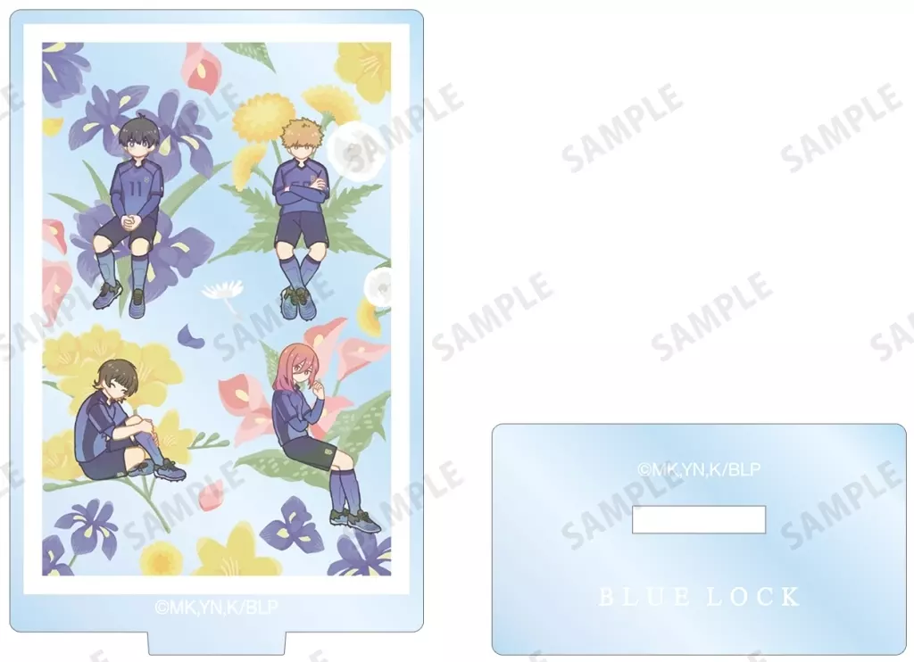 Seiichi Kiyoshi, Hachiraku Mawashi, Rensuke Kunigami, Hyoma Chigiri, Seishiro calm sea, Reo Mikage, Rin Itoshi, and each Character Cactor. The flower design has been incorporated into the botanical design and is newly drawn with a delicate touch to create an acrylic stand.