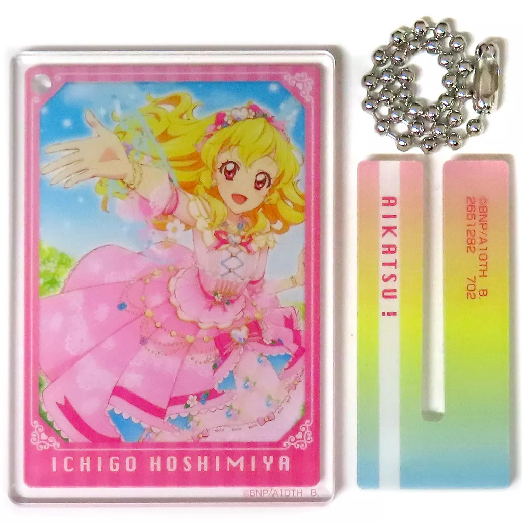 It can be used as an acrylic stand of about 59 mm x 4 mm size, or it can be carried through a ball chain!