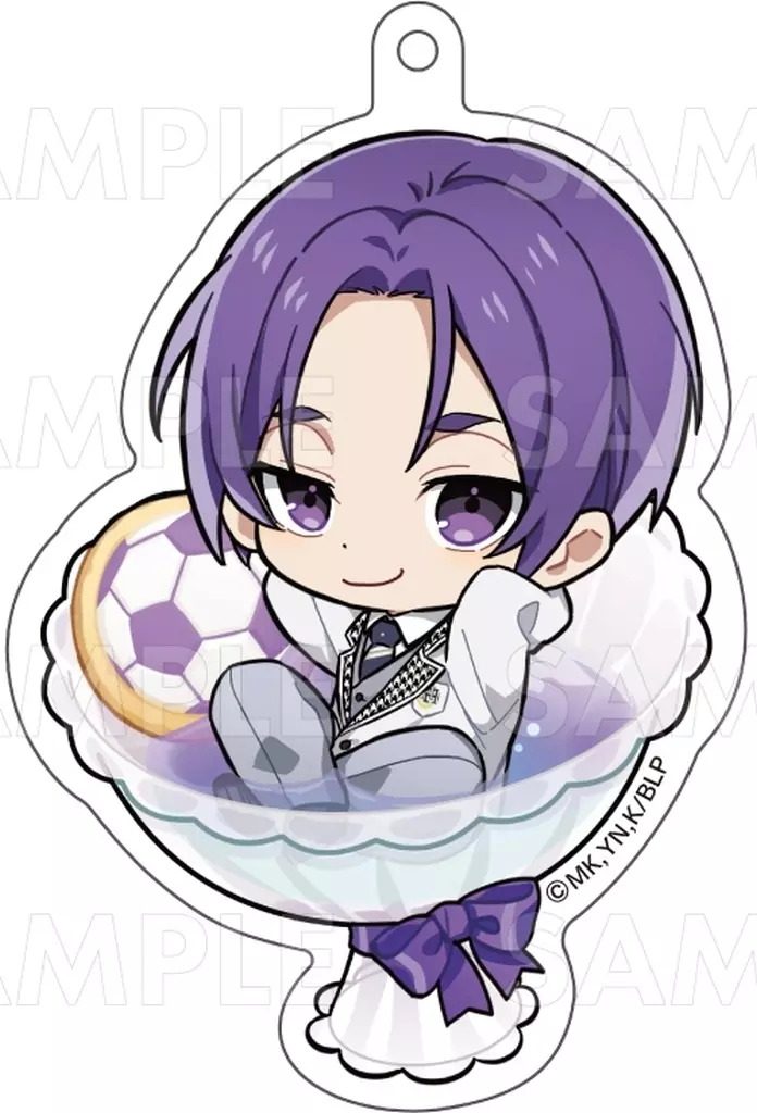 This is an acrylic key holder with the look of Victor Character of Blue Rock being immersed in a cute "Chapon!" and a colorful drink.