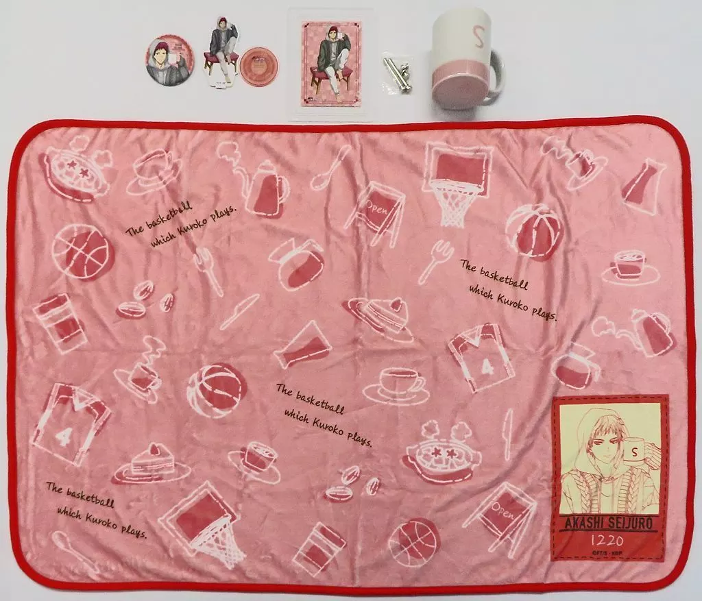 The lineup is a 6-piece set of acrylic stand, metal badge, photo frame, bromide, blanket, and mug. The mug reproduces what Akashi has!