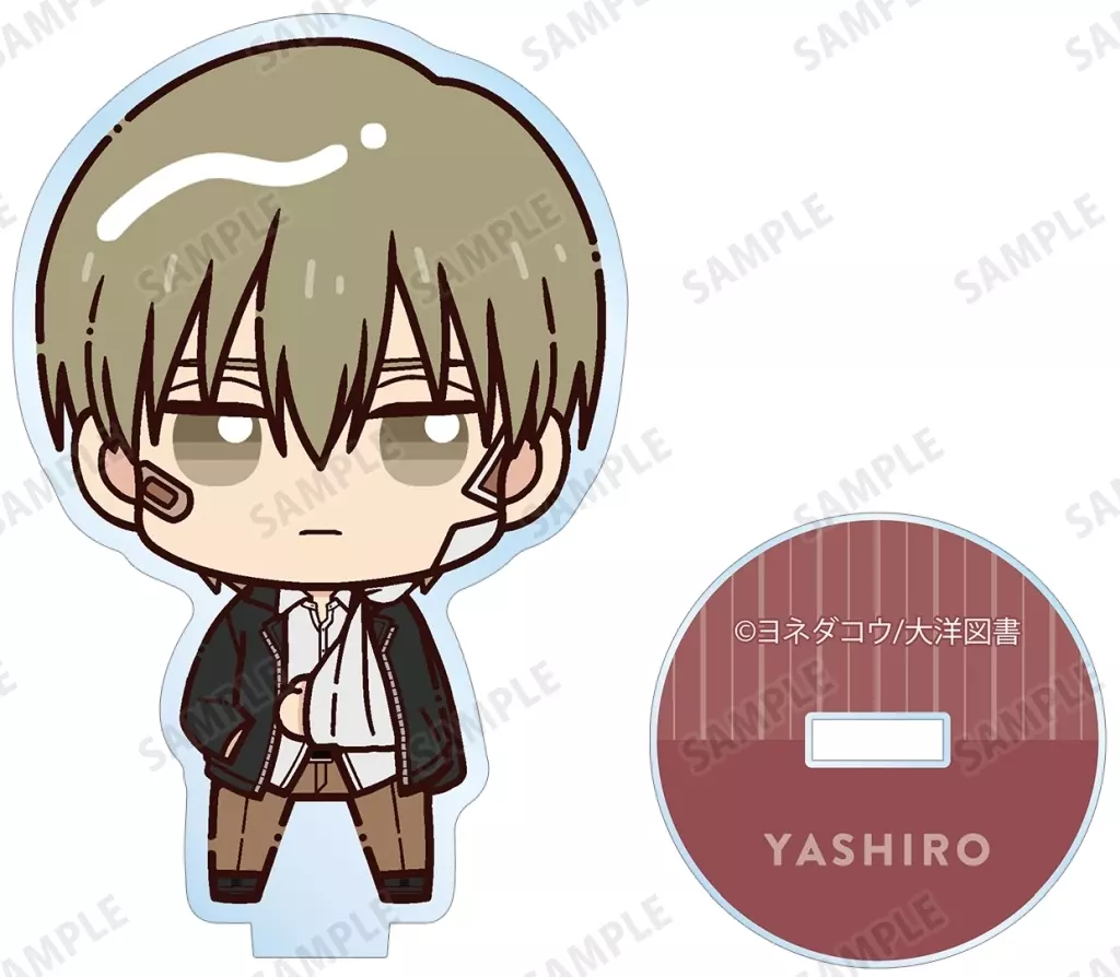 It is made into an acrylic stand with a little standing Chibi Character.