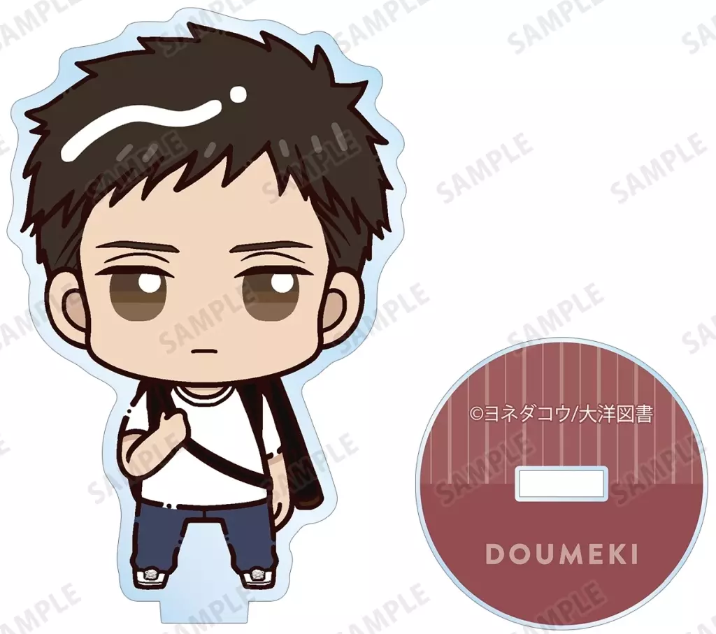 It is made into an acrylic stand with a little standing Chibi Character.