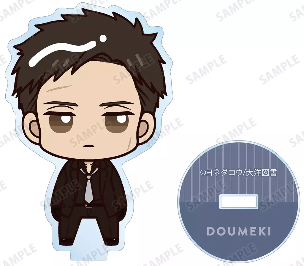 It is made into an acrylic stand with a little standing Chibi Character.