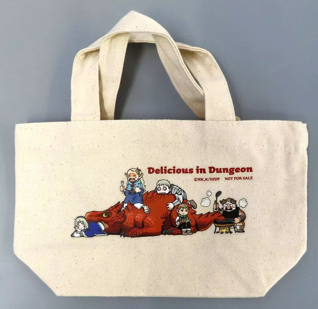 This is "Mini Lunch Bag with Original and Ryoko Kui Illustration" which is a privilege of the early reservation campaign of "Delicious in DUNGEON Blu-ray Box 1".
