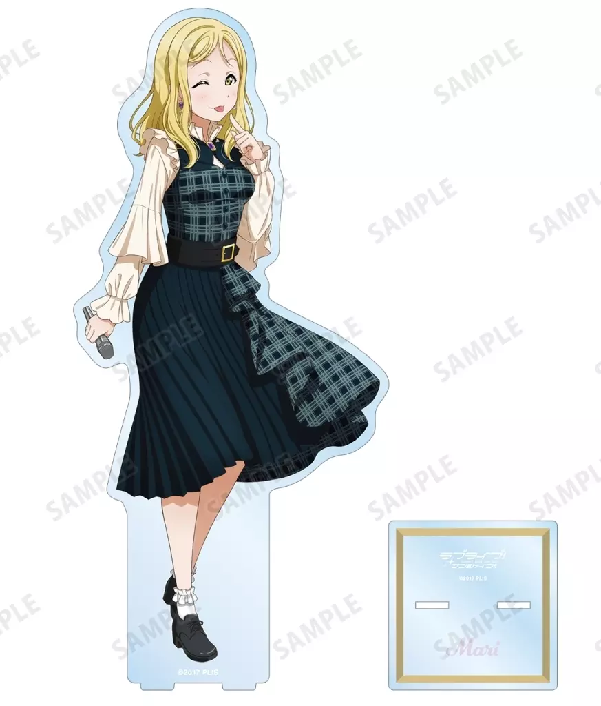Japanese title: アクリルスタンド・アクリルパネル 小原鞠莉 描き下ろし チェックワンピース衣装ver. 特大アクリルスタンド 「ラブライブ!サンシャイン!!」