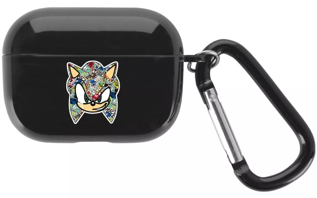 Sonic is finished into an AirPods case designed in the image of a sticker bomb.