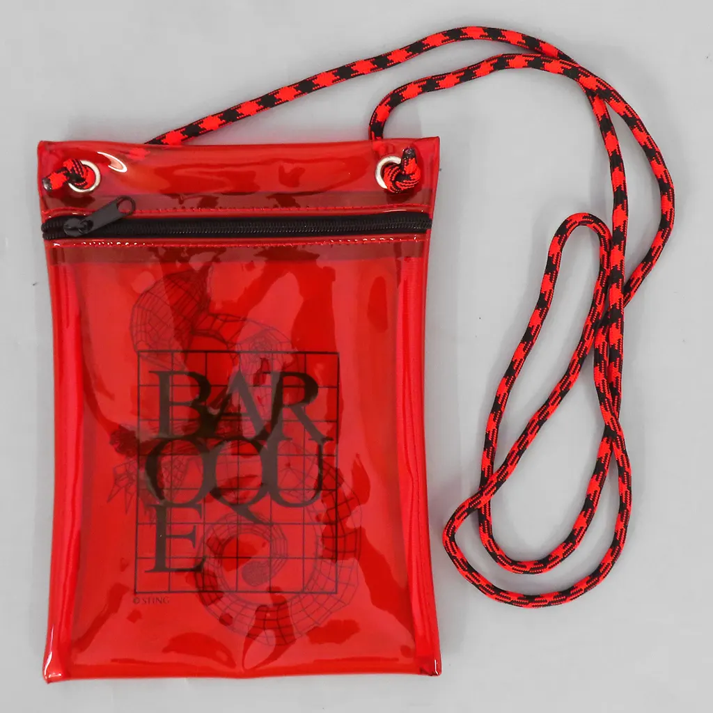 It uses red transparent PVC that allows you to check the contents, and it has a size that can hold small accessories.