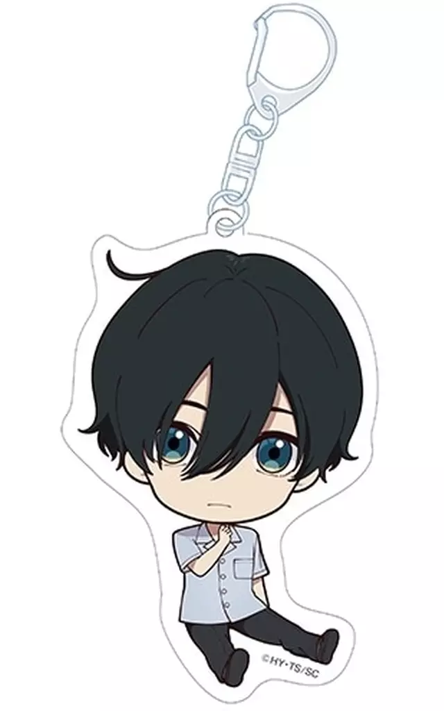 This is an acrylic key holder with a cute illustration of a drawing paper and sitting down.
