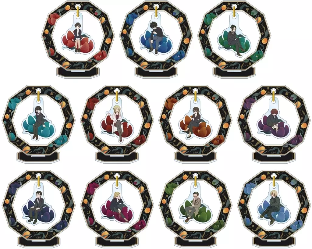 Illustrations by Zhu 常守, Shinya 狡噛, Nobumoto Ginoza, Yayoi Tsuka Rokugo, Shion Tonomori, Mika Shimotsuki, Hinakawa Shou, Teppei Sugo, Hana Castle Frederica, Joji Saika, □ ・ Wasery Ignatoff are added to the botanical design and newly created with a delicate touch. It is finished into a moving acrylic stand.
