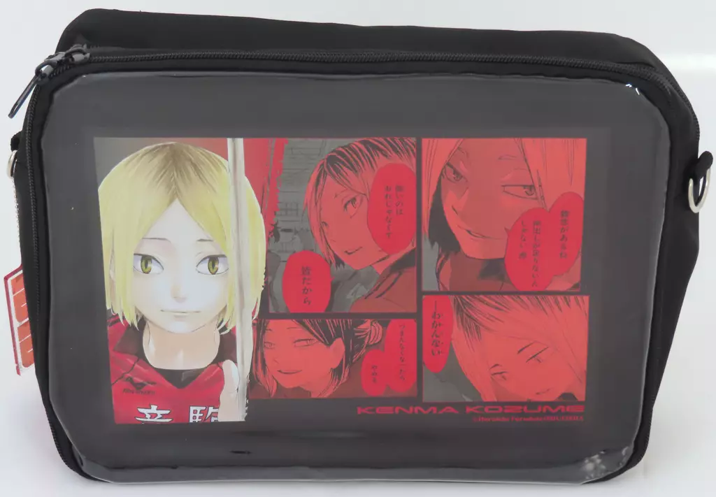 In addition, if you open the front zipper, there is a special board with a color illustration and famous scene of Kozume Kenma. Mesh fabric is attached on the back side of the board, and you can customize it freely with metal badge and charms.