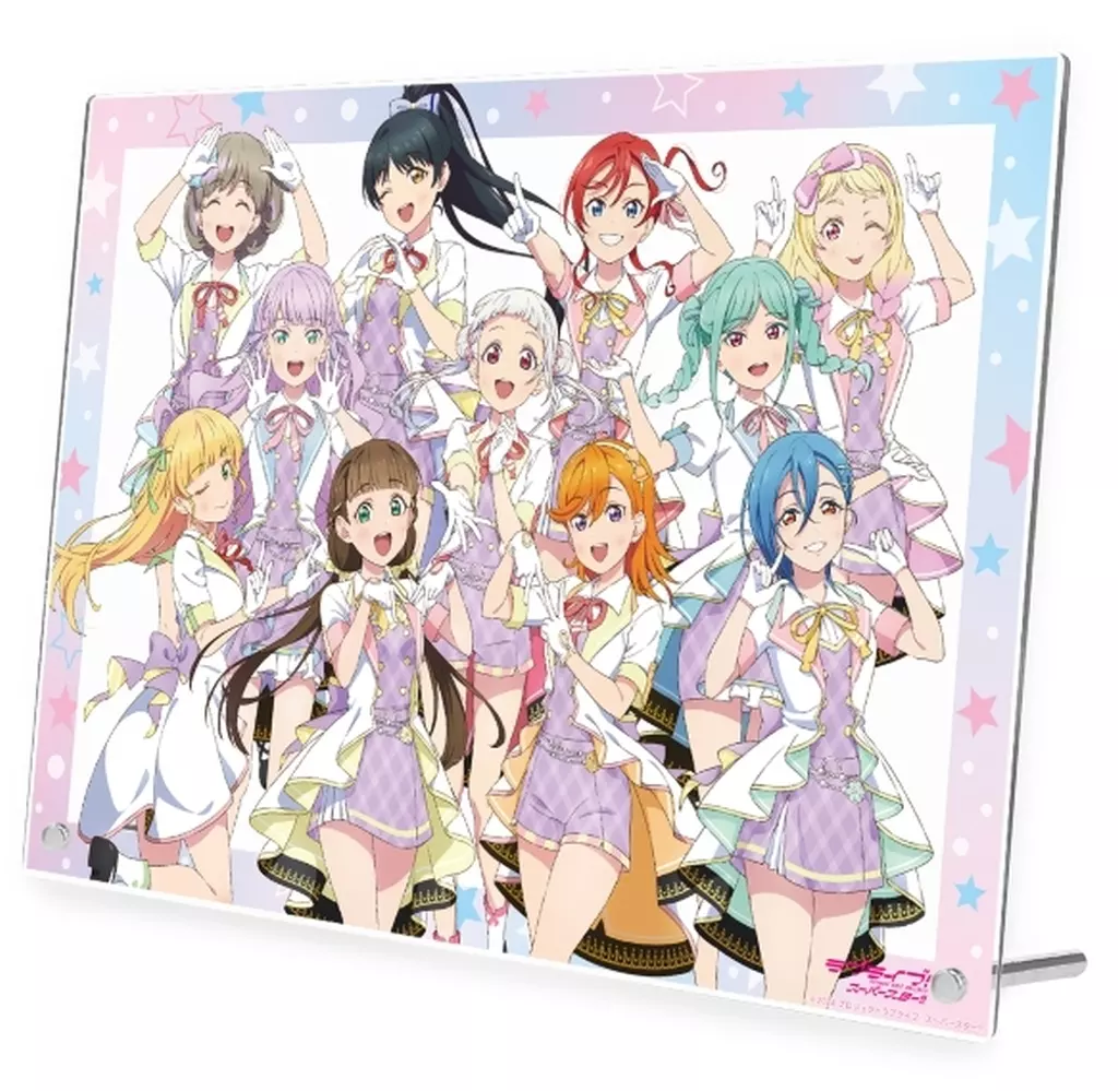 Kanon Shibuya, Ka Kara, Sen 砂都 Arashi, Sumire Matsubara 平安名, Koi Hazuki, Kinako Sakurakoji, May 米女, Shiki Wakana, Natsumi Onizuka, Viennese Margarete, and Fuyugari Onizuka are all decorated in A4 size acrylic panel.