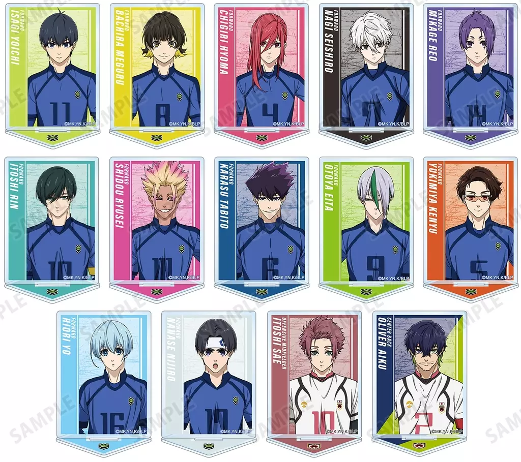 This acrylic stand features illustrations by Seiichi Kiyoshi, Hachirakumai, Sengiri Hyoma, Seishiro calm sea, Reo Mikage, Rin Itoshi, Ryusei Shido, Utabito, Kageta 乙夜, Kenyu Yukimiya, Hitsuji Sheep, Shidoryu Hijiri, Utabito, Kageta Character, Kenyu Yukimiya, Hitsuji Sheep, Shidoryu Hijiri, Utabito, Kageta Mikage, Kenyu Yukimiya, Hitsuji Sheep, Shidoryu Hijiri