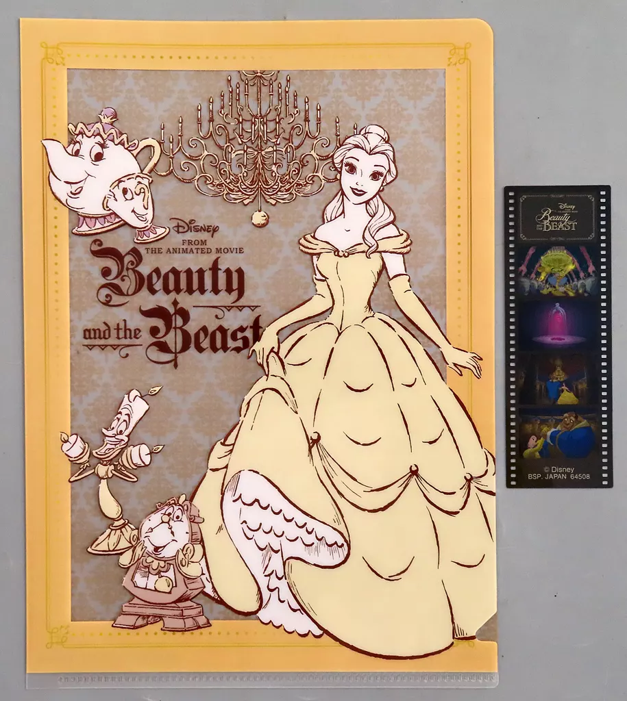 It is a set of film-like bookmarks that contain one scene of a film and Disney Princess design plastic trasparent file folder.
