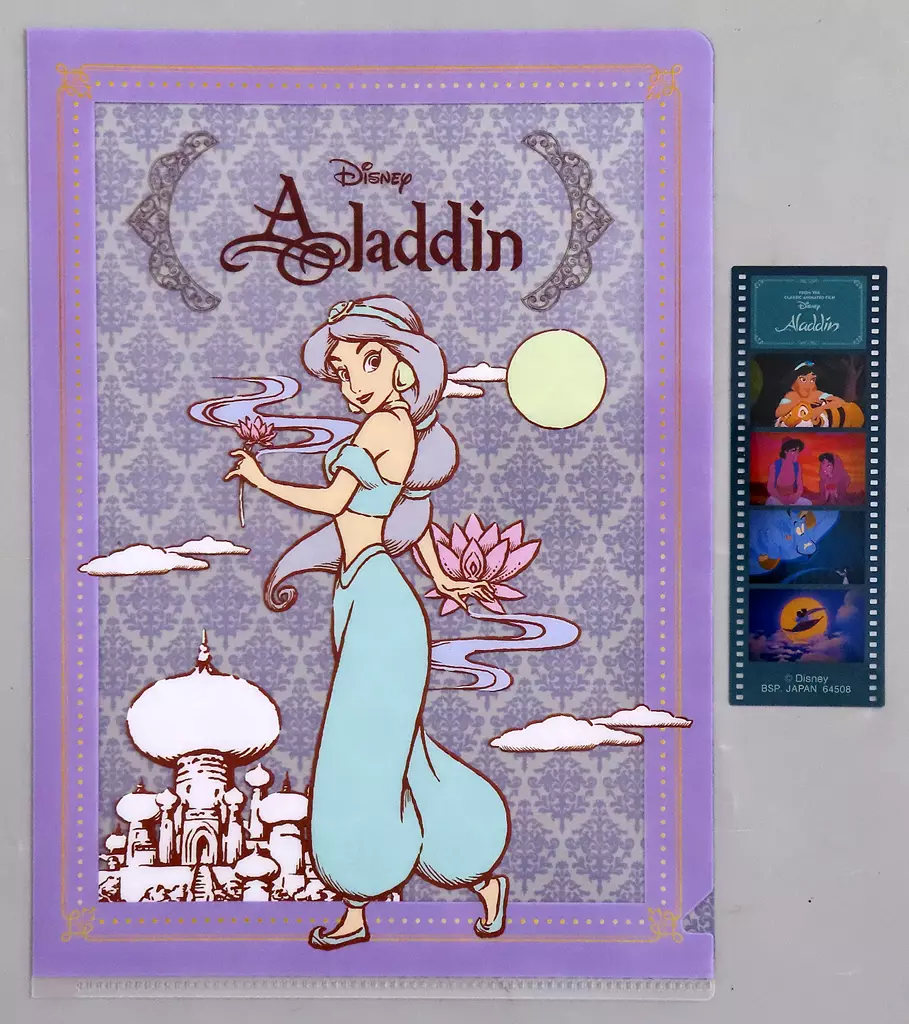 It is a set of film-like bookmarks that contain one scene of a film and Disney Princess design plastic trasparent file folder.