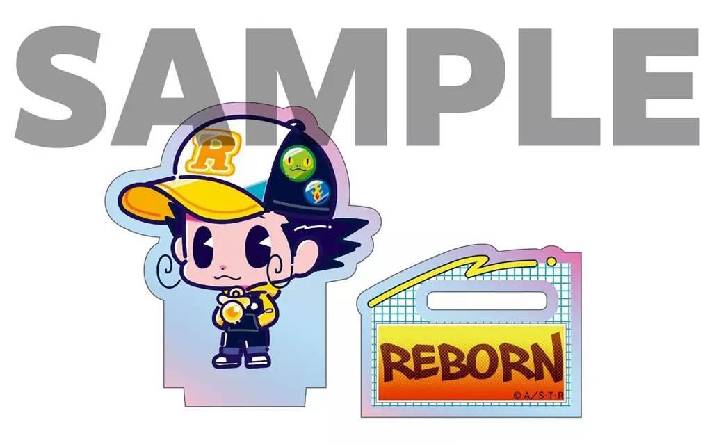 This is an aurora acrylic stand with a retro illustration of 90's street fashion style from "Home Teacher Hit Man REBORN!".