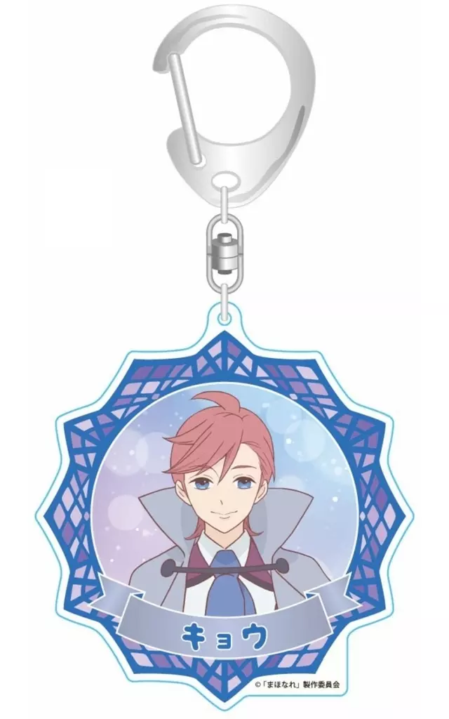 This is an acrylic key holder with a printed illustration of Mr. Character.