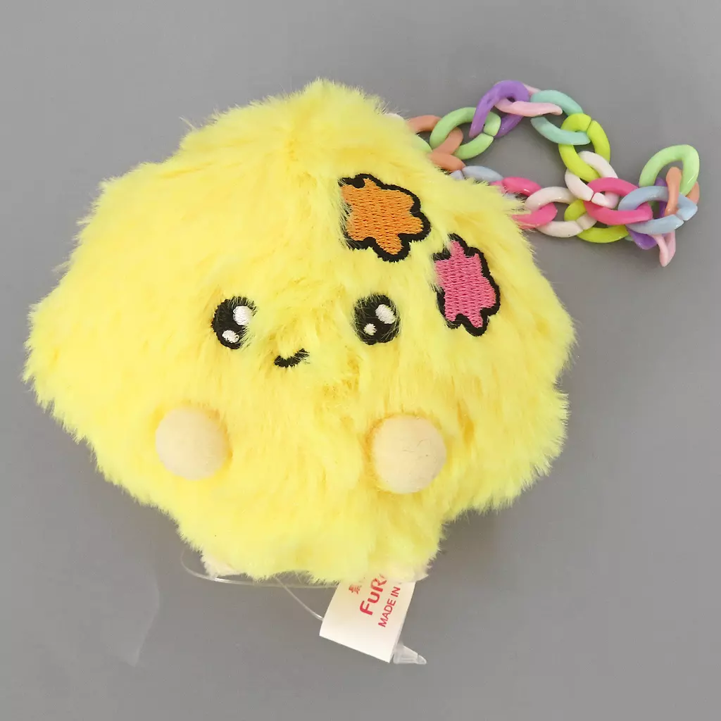 This is a fluffy Plush toy with a chain attached.