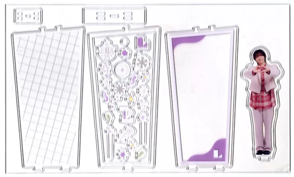 This item can be decorated with a member's clear stand or logo charm in the frame.