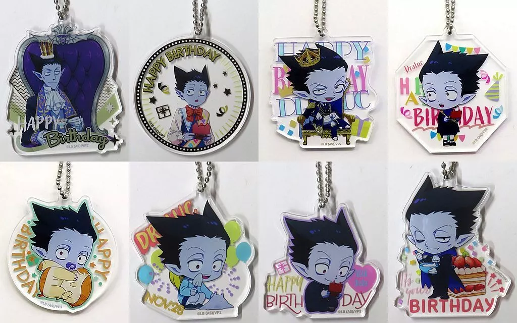 Merchandise Description ■ "KUJI Hikido Kyuketsuki Sugu Shinu 2 Doraluc Birthday KUJI Vol. 2" D-prize premium acrylic key holder set of 8 kinds.