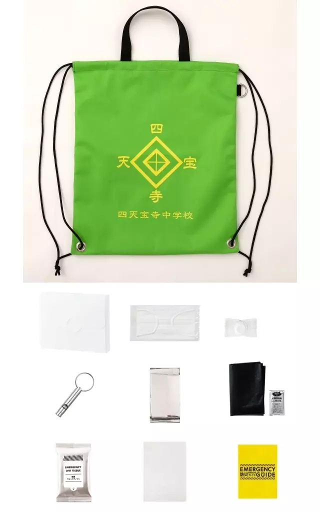 Size : Knapsack : approx. W37 x H44.5 cm (handle not included), Case : approx. 20 x 16 x 3.5 cm, Mask : approx. 16.5 x 9.5 cm, Compressed Towel : when spread : approx. 20 x 22 cm, Aluminum Blanket : approx. 70 x 140 cm, wet tissue : approx. 9.2 x 14.4 cm, Coagulant : approx. 5 x 8.3 cm, Trash Bag with Portable Toilet : approx. 65 x 50 cm, Plastic Bag : approx. 18 x 27 cm, Whistle : approx. 2.9 x 4.6 x 0.9 cm, Disaster Prevention Guide : approx. 7 x 10.5 cm