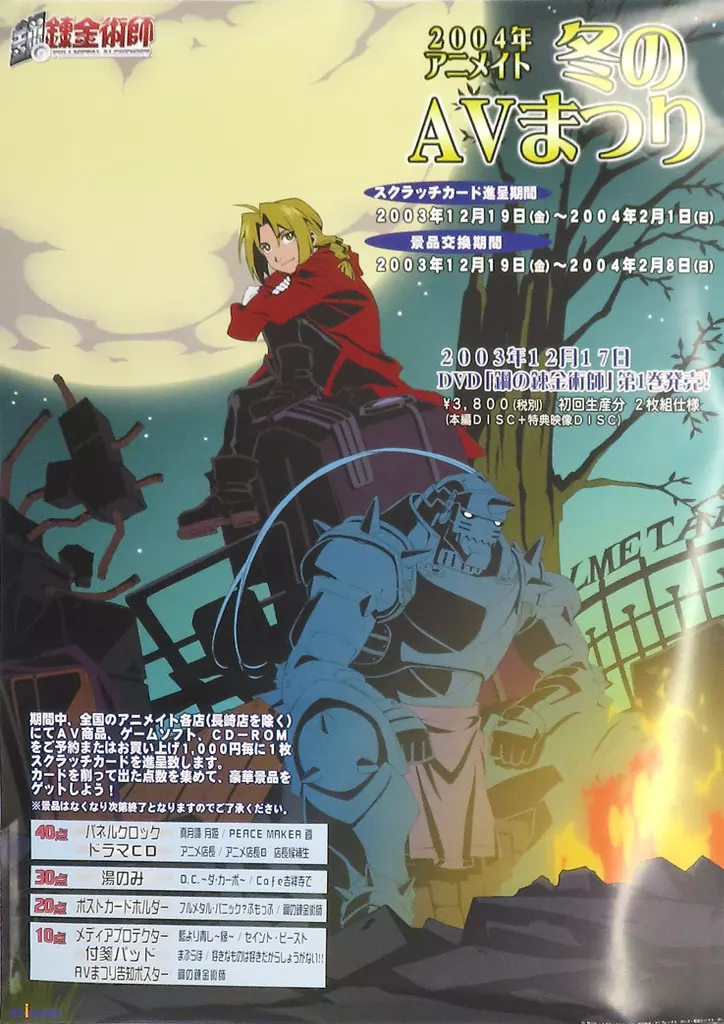 This is a promotional poster for the 2004 Animate Winter AV Festival "Fullmetal Alchemist".