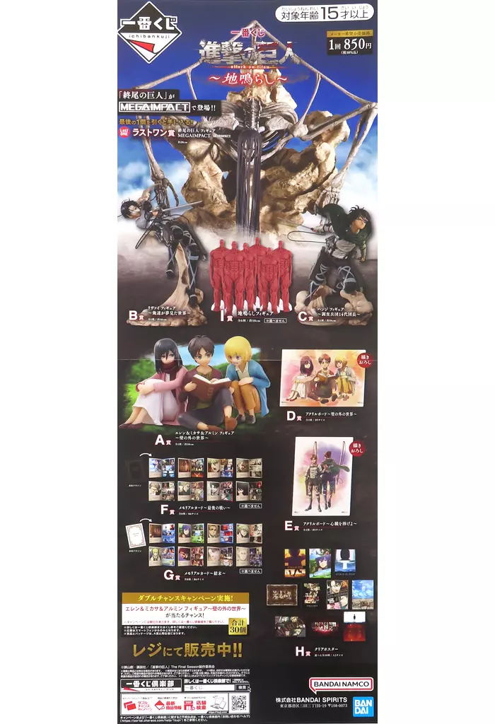 It will be "A2 half-cut sales promotion poster" of "Ichiban KUJI Attack on Titan ~ Jiringari ~".