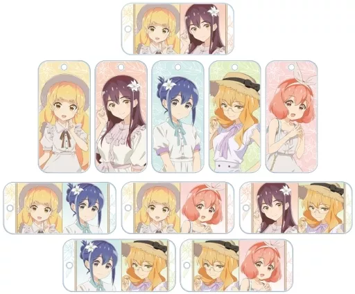 The illustration of 陽芽, Mizuki, 果乃子, Junka, and Mai is made into an acrylic key tag.