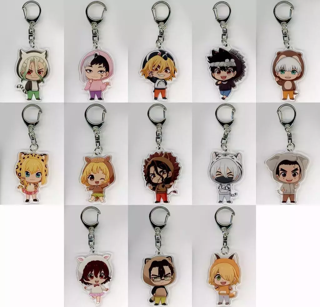 The illustration of Chiku Ishigami, Gen Asagiri, Ryusui Shitsumi, Chrome, Saionji 羽京, Amber, Watermelon, Shishi Oji, Hyogetsu, Taiki Ōki, Satoru Ogawa, Kinro, Ginro no Chibi Character is made into an acrylic key holder.