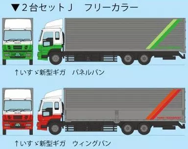 Set Contents : Isuzu New Giga x 2 (Panel Van : Gray x Green / Wing Van : Gray x Red)