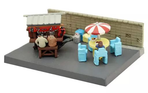 Set Contents : Stall, Figure x4, Table with Parasol, Chair x4, Long Chair, Trash Can, Wooden Box, etc., Block Wall, Base, Sticker