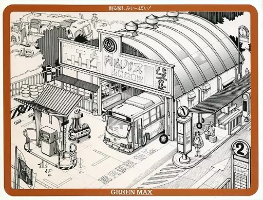 Garage, oil depot, terminal, cubic bus, 9 bus stops of 6 types
