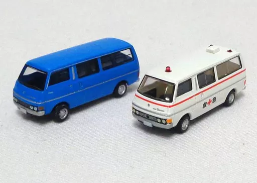 In "The Car Collection Vol. 7 Commercial Vehicle Konjaku Hen", 1/150 Nissan Character Van Long compact van (blue) & (ambulances specifications) 2-unit set is lined up.