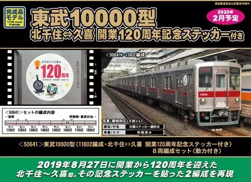 Product Explanation ■ Between Kita-Senju and Kuki : Commercialized a 10000-type 11802 train with a sticker attached to the 120th anniversary of the opening