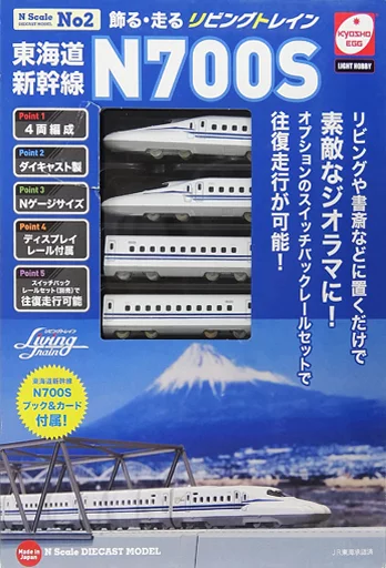 1 first car, 1 first car (with magnets), 2 middle cars, 3 display rails, Living Train Book, Tokaido Shinkansen N700S card, description