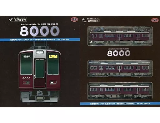 In the "■「 Railway Collection" which explains the products, there is a line up of 3 sets of renewed first generation Hankyu Dentetsu 8000 series cars.