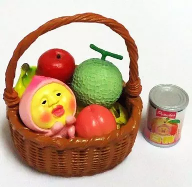 Dwarfs and figurines, apples, melons, bananas, peaches, canned peaches, baskets
