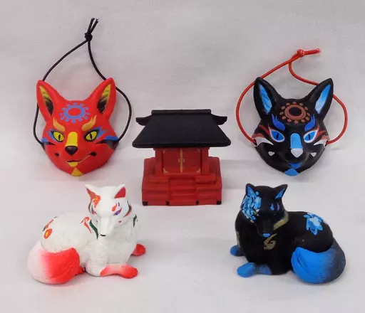 The capsule toy (Gacha Gacha) is a collection of Japanese style fox goods. There are 5 types in the contents : Komitsune (Camellia), Komitsune (Hydrangea), Kitsune men (Purgatory), Kitsune men (Gen) and Sha.
