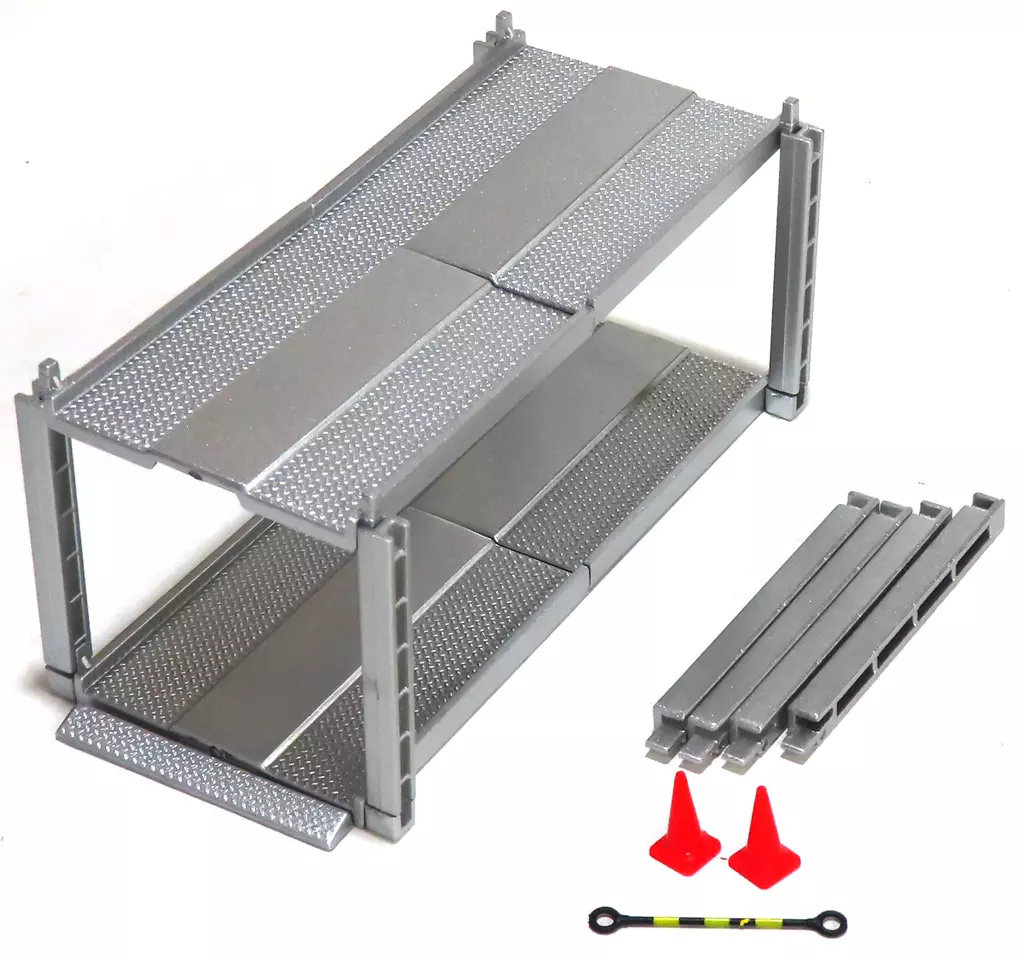 Specifications : Parking lot set (4 plates, 4 props, 4 prop tips, 4 connecting parts, 4 ramps)