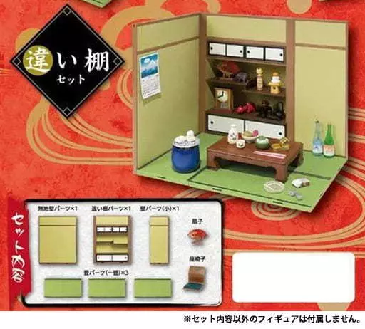 Plain Wall Part, Staggered Shelf Part, Wall Part (Small), Tatami Part (1 tatami) x 3, Fan, legless chair, Straight Joint x 12, Corner Joint x 2, Horizontal Connection Joint x 2