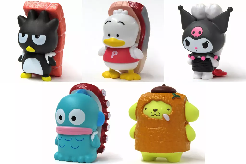 商品解説■サンリオキャラクターズ 寿司-sushi-2が登場!全5種セットです。【商品詳細】<セット内容>バッドばつ丸あひるのペックルクロミハンギョドンポムポムプリンサイズ:約4.5cm