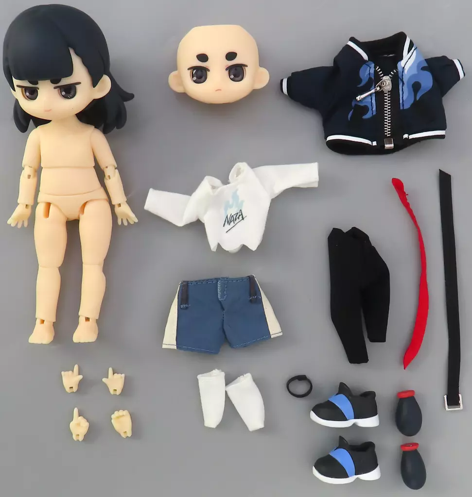 前髪パーツ、後髪パーツ、メイク済みの顔パーツ、アイパーツ、衣装×1セット、BJD関節ボディ素体、交換用ハンドパーツ×4