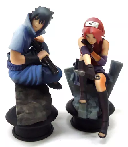 This is "Uchiwa Uchiwa Sasuke & Haruno Sakura Set". If you buy it together with "Uzumaki Uzumaki Uzumaki Naruto & Hatake Taketake Taketake Kakashi Set" released at the same time, members of Hatake Taketake Kakashi Group or 7th group will be gathered!