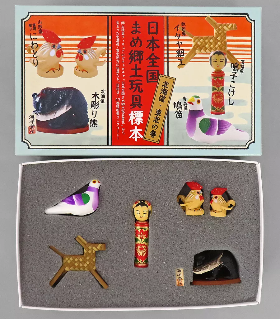 Sasano Carved Chicken (Yamagata Prefecture), Wood Carved Bear (Hokkaido Prefecture), Itaya Crafts (Akita Prefecture), Naruko Kokeshi (Miyagi Prefecture), Hatofue (Aomori Prefecture), Box