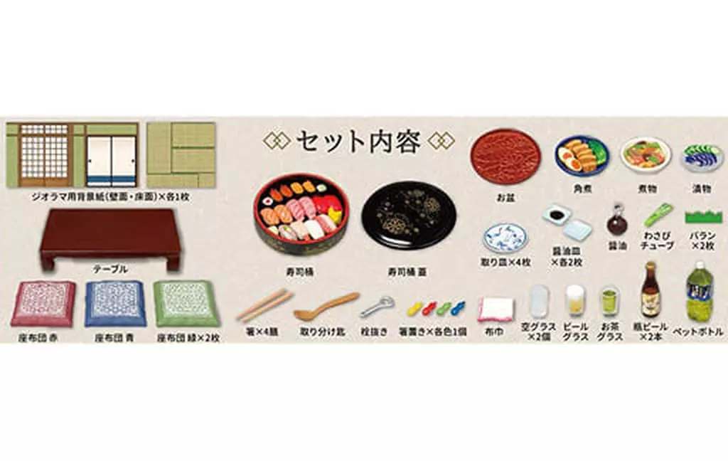 This is a set of miniature figures that can reproduce a luxurious family meal scene even if you are new to the "Puchi Sample" series.
